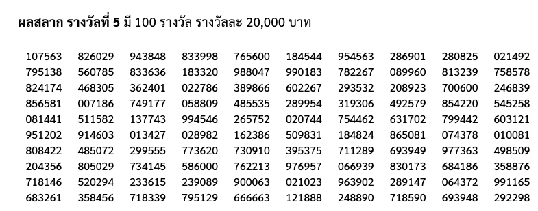 เลขท้าย 2 ตัว 1 รางวัล รางวัลละ 2,000 บาท