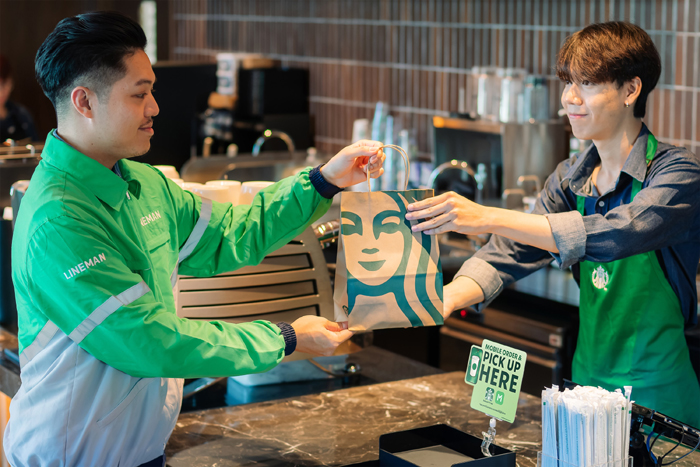 ด้าน คุณสุธาวัลย์ ประสงค์ดี ผู้อำนวยการอาวุโส ฝ่ายพัฒนาธุรกิจ LINE MAN Wongnai กล่าวเสริมว่า “ความร่วมมือ ระหว่างสตาร์บัคส์และ LINE MAN ในครั้งนี้เป็นการผสานจุดแข็งของทั้งสองแบรนด์ เพื่อยกระดับประสบการณ์ของผู้บริโภคให้สามารถเพลิดเพลินกับเครื่องดื่มคุณภาพจากสตาร์บัคส์ได้ทุกที่ทุกเวลา ผ่านบริการฟู้ดเดลิเวอรีของ LINE MAN ความร่วมมือนี้ยังตอบโจทย์พฤติกรรมผู้บริโภคที่เปลี่ยนแปลงไป โดยเฉพาะในปีที่ผ่านมา ที่การสั่งเครื่องดื่มประเภทชาและกาแฟผ่านเดลิเวอรีเพิ่มขึ้นถึง 27.83% ในขณะที่ตลาดฟู้ดเดลิเวอรีในปี 2024 เติบโตอย่างแข็งแกร่ง โดยมีมูลค่ากว่า 1.2 แสนล้านบาท หรือเติบโต 7% เมื่อเทียบกับปีก่อนหน้า (อ้างอิง: Google TH SEA eConomy 2024)