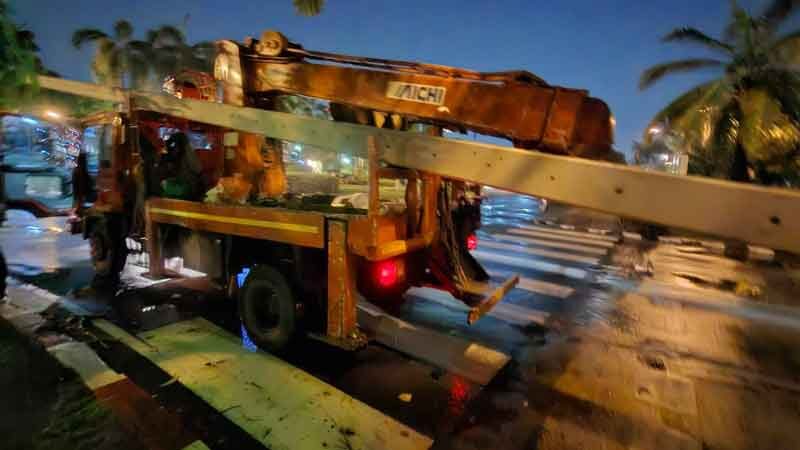 เสาไฟฟ้าล้มกีดขวางทางเข้าออกอาคารสำนักงาน เจ้าหน้าที่ออกจากอาคารไม่ได้ เบื้องต้นมีเจ้าหน้าที่การไฟฟ้ามาช่วยตัดไฟเพื่อความปลอดภัย จากนั้นมีเจ้าหน้าที่กู้ภัยเข้ามาช่วยเหลือผู้ที่ติดค้างออกจากที่เกิดเหตุ