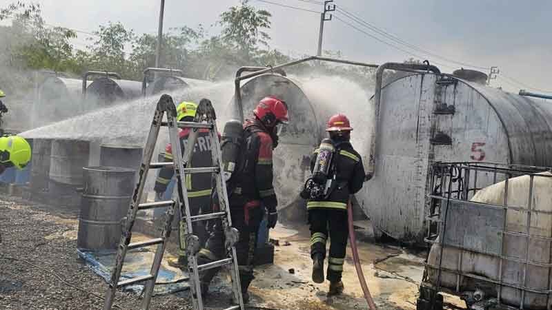 เบื้องต้นเป็นถังเก็บน้ำมันปาล์ม ขนาด 6,000 ลิตร และขนาด 200 ลิตร จำนวนหลายถัง มีทั้งถังเปล่า และถังที่มีน้ำมันอยู่ด้านใน ในที่เกิดเหตุไม่มีผู้ได้รับบาดเจ็บ รายละเอียดเพิ่มเติมอยู่ระหว่างการตรวจสอบ