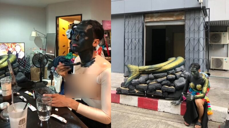สำหรับการเตรียมตัว เมื่อทำชุดเรียบร้อยแล้ว ก็ใช้บริการขนส่งผ่านรถกระบะตู้ทึบมาส่งถึงสถานที่จัดงาน ก่อนจะเนรมิตเพนต์ทั้งตัว แต่งแต้มสีสัน จนมีลักษณะคล้ายกับรูปปั้น แม้แต่เส้นผม ก็เก็บรายละเอียดอย่างดี ยืนหนึ่งมงลงฉ่ำ ๆ กันเลยทีเดียว