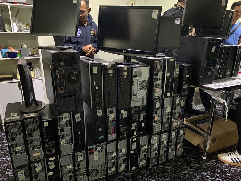 โดยตรวจยึดของกลาง ประกอบด้วย สมุดบัญชีเงินฝาก 58 เล่ม บัตรเอทีเอ็ม 21 ใบ โน้ตบุ๊ก 7 เครื่อง คอมพิวเตอร์ 41 เครื่อง ซิมโทรศัพท์ 203 ซิม โทรศัพท์มือถือ 16 เครื่อง รถเบนซ์ 2 คัน รถตู้โฟล์ค 1 คัน เงินสด 118,800 บาท ทองรูปพรรณ พระเครื่อง กระเป๋าแบรนด์เนม และเอกสารอีกหลายรายการ