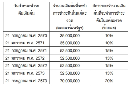 บริษัทจะทยอยชำระคืนเงินต้นตามตารางดังนี้