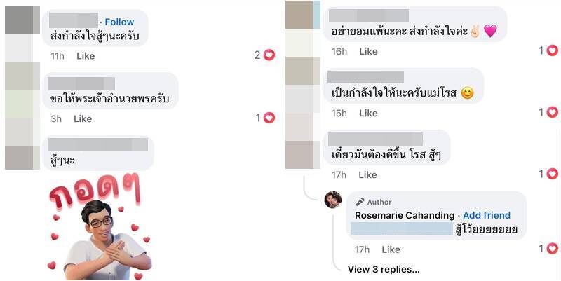 หลังจากที่โพสต์ได้เผยแพร่ออกไป มีแฟนๆ เข้ามาให้กำลังใจสาวโรสแมรี่ กันอย่างมากมาย