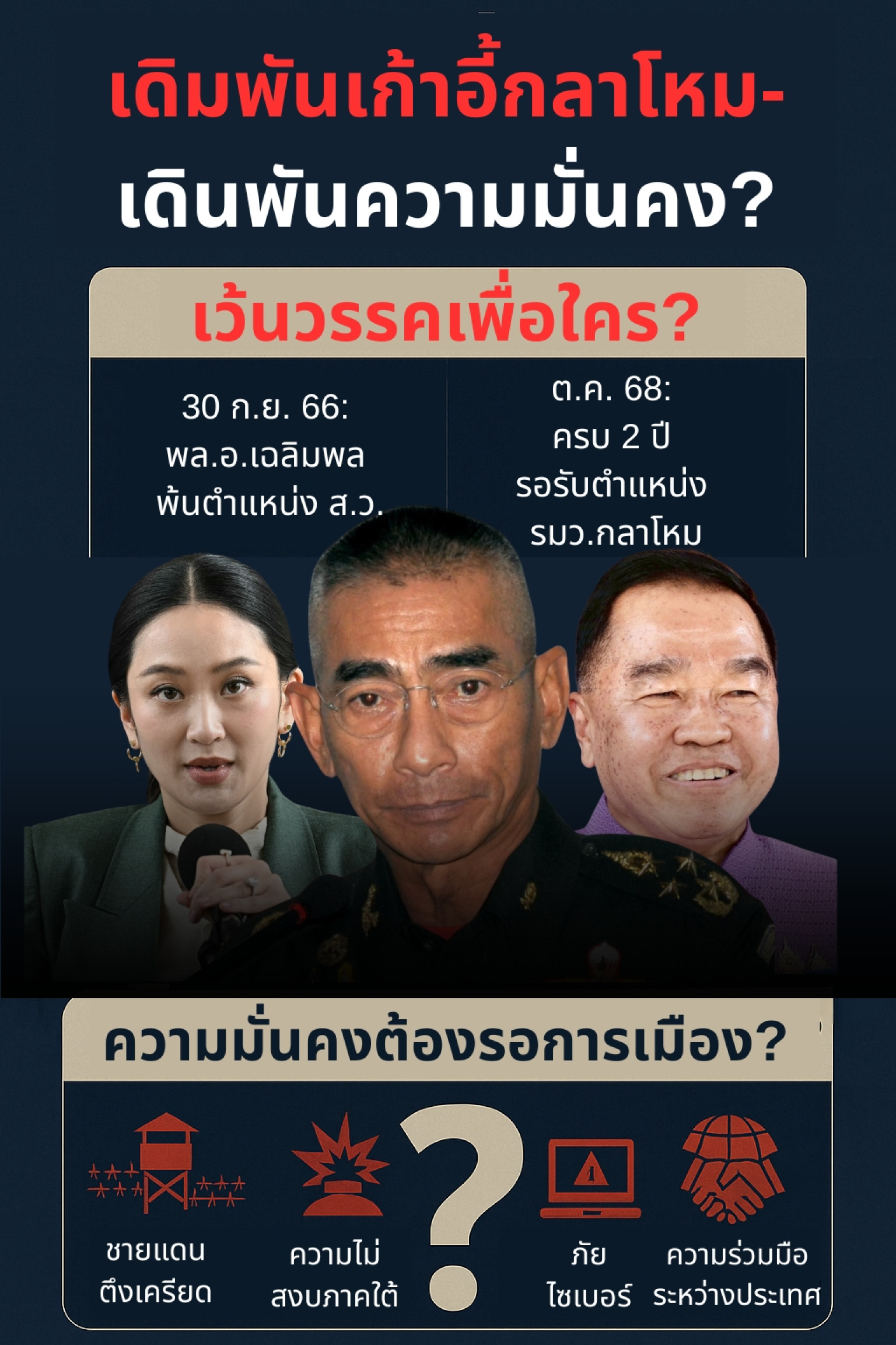 วางหมากยาว เตรียมตัวสำหรับการเลือกตั้งหรือเปลี่ยนผ่านอำนาจในอนาคต โดยใช้ความมั่นคงเป็นเครื่องมือเจรจาทางการเมือง