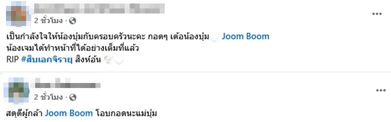 -เป็นกำลังใจให้น้องบุ๋มกับครอบครัวนะคะ กอดๆ เด้อน้องบุ๋ม Joom Boom