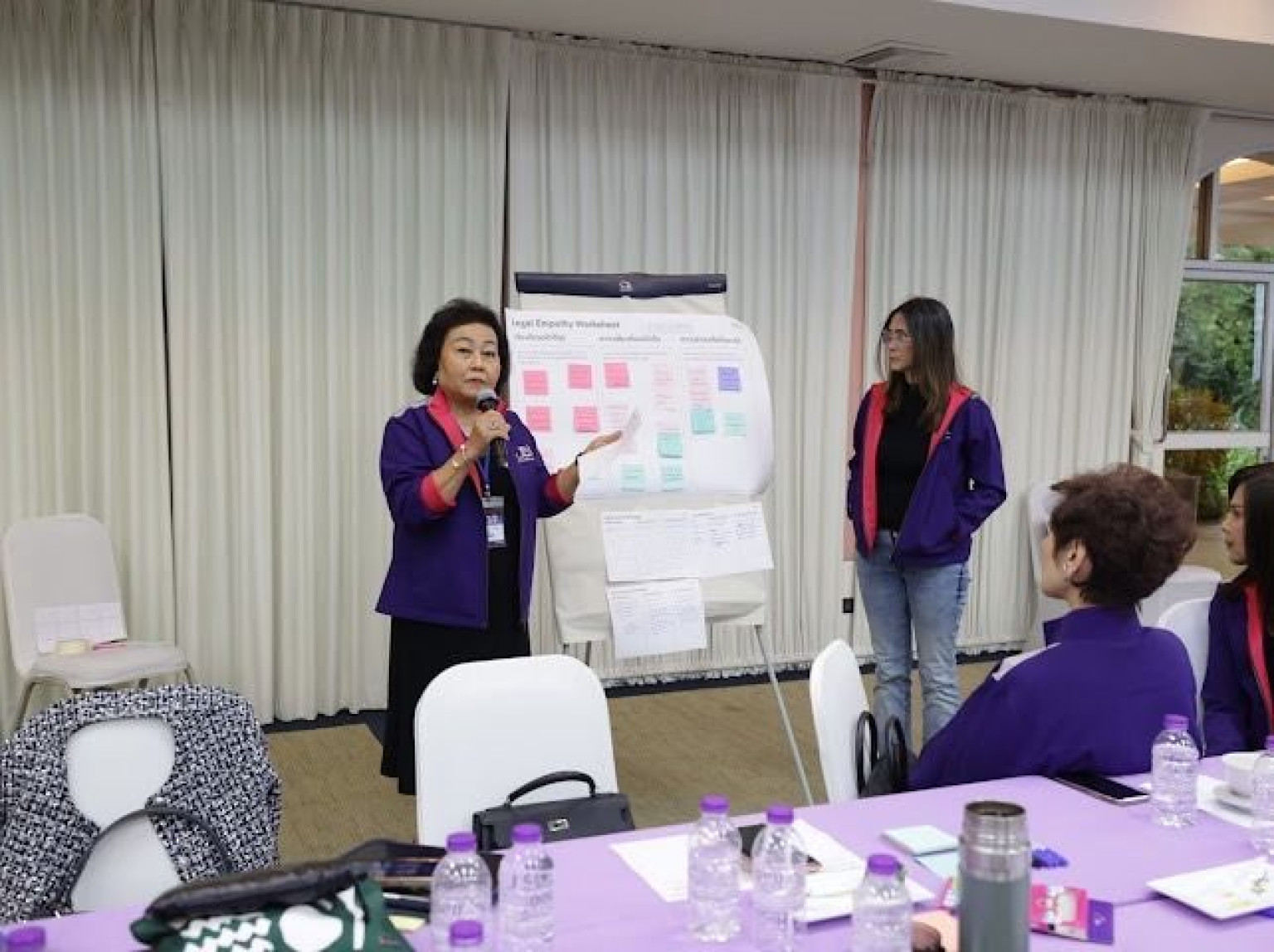 หลังจากนั้นได้มีการจัด Workshop เชิงปฏิบัติการ “ถอดรหัส Pain Points ผลกระทบของกฎหมายด้วยกระบวนการ Design Legal Thinking Process เพื่อให้การบริหารธุรกิจประสบความสำเร็จ” ซึ่ง คุณเมย์ ศรีพัฒนาสกุล ผู้ก่อตั้งและประธานเจ้าหน้าที่บริหารของ Asian Leadership Academy และบริษัทลูกคิด (LUKKID) จำกัด เป็นผู้นำในช่วงต้นของ Workshop โดยคุณเมย์ได้เน้นย้ำถึงความจำเป็นที่นักธุรกิจ ผู้ประกอบการ และแม้แต่นักกฎหมายต้องเรียนรู้ Design Legal Thinking Process เพื่อเชื่อมโยงเจตนารมณ์ของกฎหมายเข้ากับความต้องการของผู้ใช้