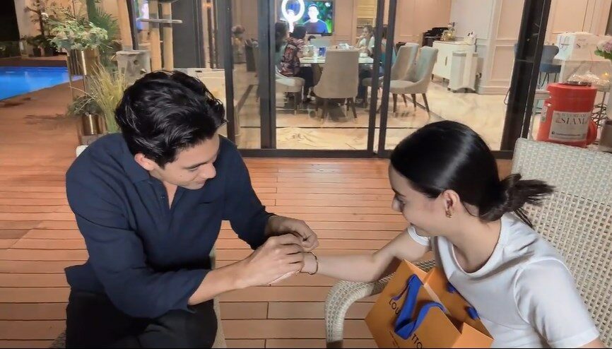 ทุกครั้งที่ใส่กำไลเขา ก็เหมือนมีเขาอยู่ข้างๆ ตลอดเวลา ? มุกดา : "คือเวลาที่ใครให้อะไร ไม่ว่าจะเป็นพี่หนิง ปณิตา หรือใครให้อะไรหนูใส่ หนูก็นึกถึงคนที่ให้เสมอ ไม่ว่าจะเป็นใครที่ให้ค่ะ พอเรามองก็โอเค อันนี้เข้มให้ (ยิ้ม)"