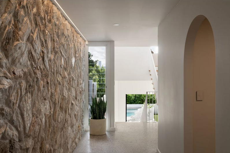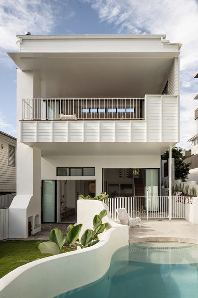 บ้านสองชั้นหลังนี้ ตั้งอยู่ในย่านชานเมืองที่เงียบสงบ และร่มรื่นของ Norman Park, Australia เป็นบ้านที่ทำหลังคาเป็นทรงจั่ว หน้าบ้านภายนอกค่อนข้างดูปิดทึบเน้นความเป็นส่วนตัว แต่หลังบ้านจะเปิดกว้างรับแสงธรรมชาติได้อย่างเต็มที่ โดยมีสระว่ายน้ำเล็กๆ สีขาวที่ได้รับแรงบันดาลใจจากแคลิฟอร์เนียพร้อมปูสนามหญ้า เพื่อเพิ่มพื้นที่พักผ่อน แถมให้ความสดชื่นให้กับผู้อาศัยเป็นอย่างดี