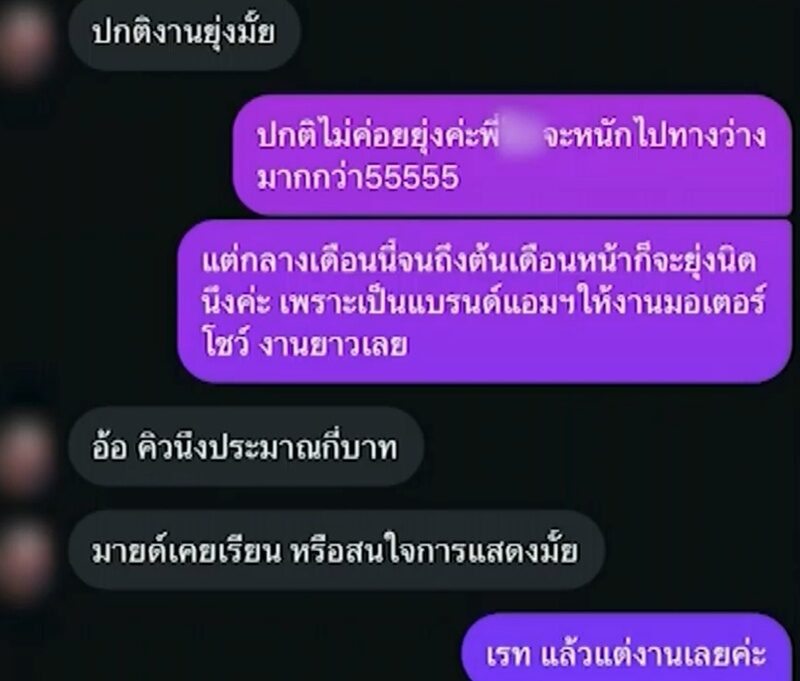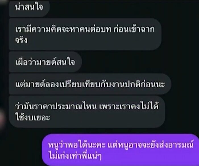 *ถามว่าไม่ได้บริการเสน่ห์ใช่ไหม มายด์ ยืนยันว่า* กับเพื่อนๆ ผู้หญิง หนูก็คุยแบบนี้ จากนั้นก็คุยกันสั้นๆ ไม่ได้คุยกันยาวๆ มีเล็กๆน้อยๆ ทักมาประปราย ถ้าจริงจัง ก็ต้นปีนี้ วนมาอีกที มกราคม ปีนี้ เขาทักมาถามว่าสบายดีไหม หนูก็ตอบไปว่าสบายดี