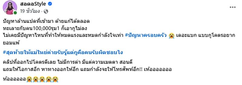 ปัญหาถาโถม108ก็เอากูไม่ลง วันนี้หมดกำลังใจ สอดอ Style ร่ำไห้เสียใจคนในครอบครัวจะทำร้าย ทั้งที่เป็นเดอะแบก โคตรท้อยกมือไหว้ขอยอมแพ้ ลั่นจะแฉอะไรไม่กลัว