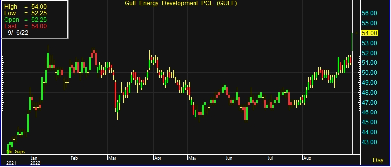 โดยราคาหุ้น GULF ปรับตัวเพิ่มขึ้นแรงวันนี้ ตอบรับกับบริษัทหลักทรัพย์ เครดิต สวิส ปรับเรตติ้งเป็น Outperform เนื่องจากต้นทุนพลังงานที่พุ่งขึ้นจะทำให้ระยะห่างของการแข่งขันกว้างขึ้นสำหรับ GULF จากการดำเนินงานที่สามารถส่งผ่านต้นทุนได้ไปยัง กฟผ. ด้านคู่แข่งในตลาดรายอื่นๆ ต้องเผชิญกับปัญหามาร์จิ้นที่แคบลง ซึ่งมองเป็นโอกาสสำหรับ GULF ขณะที่รายอื่นๆ กำลังมองหาการชําระกิจการและทรัพย์สิน หรือมีความมุ่งมั่นที่จะประมูลงานใหม่น้อยลง