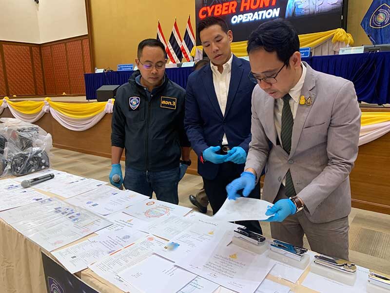 เมื่อเวลา 14.00 น. วันที่ 29 ก.พ. 2567 ที่กองบัญชาการตำรวจสืบสวนสอบสวนอาชญากรรมทางเทคโนโลยี (บช.สอท.) เมืองทองธานี พล.ต.ท.ธัชชัย ปิตะนีละบุตร ผู้ช่วย ผบ.ตร. พล.ต.ท.วรวัฒน์ วัฒน์นครบัญชา ผบช.สอท. พล.ต.ต.อรรถสิทธิ์ สุดสงวน รอง ผบช.สอท. พล.ต.ต.นิพล บุญเกิด ผบก.สอท.2 พล.ต.ต.สถิตย์ พรมอุทัย ผบก.สอท.3 และผศ.ดร. พนมพัทธ์ สมิตานนท์รักษาการอธิการบดี มหาวิทยาลัยสุโขทัยธรรมาธิราช ร่วมแถลงปฏิบัติการ “Cyber Hunter Operation” ตัดวงจรภัยออนไลน์ ทลายเครือข่ายปลอมวุฒิการศึกษาส่งขายออนไลน์ 2 เครือข่าย