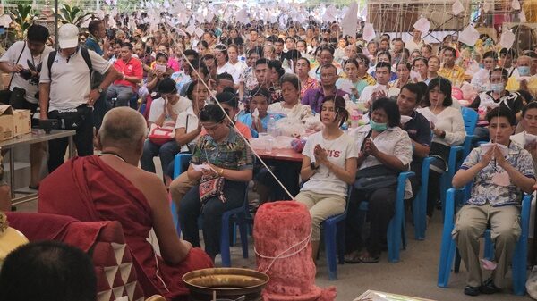 วัดแทบแตก แห่ร่วมพิธี เป่ายันต์เกราะเพชร วัดดังนครปฐม เปิดเลขเด็ด