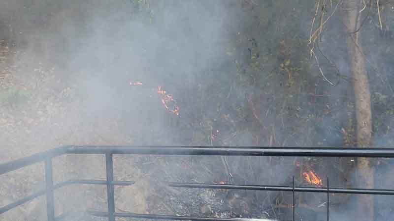 ที่เกิดเหตุพบกลุ่มควันและแสงเพลิงลุกลามในพื้นที่พงหญ้าและเศษใบไม้แห้ง เจ้าหน้าที่จึงใช้น้ำฉีดสกัดแนวไฟอย่างต่อเนื่อง ก่อนสามารถควบคุมเพลิงไว้ได้ภายในเวลาประมาณ 5 นาที จนเพลิงสงบเหลือเพียงกลุ่มควัน จากนั้นเจ้าหน้าที่ได้เฝ้าระวังตรวจสอบพื้นที่โดยรอบจนแน่ใจว่าไฟไม่ปะทุซ้ำและไม่ลุกลามเพิ่มเติม