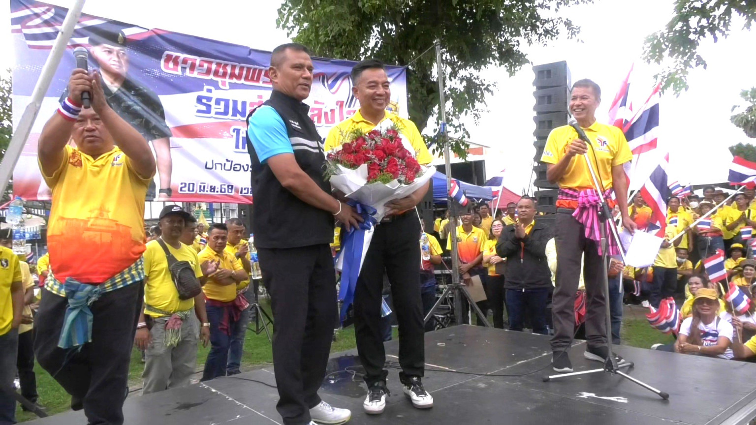 ชุมพร สส.-ชาวบ้าน ร่วมหมื่น แถลงการณ์จุดยืน รัก ชาติ ศาสนา พระมหากษัตริย์ ให้กำลังใจแม่ทัพภาค 2 เหล่าทหารกล้าแนวหน้า ลั่น "นายกฯไม่ออกเราออก"