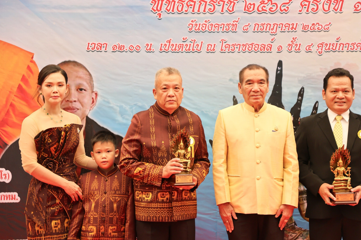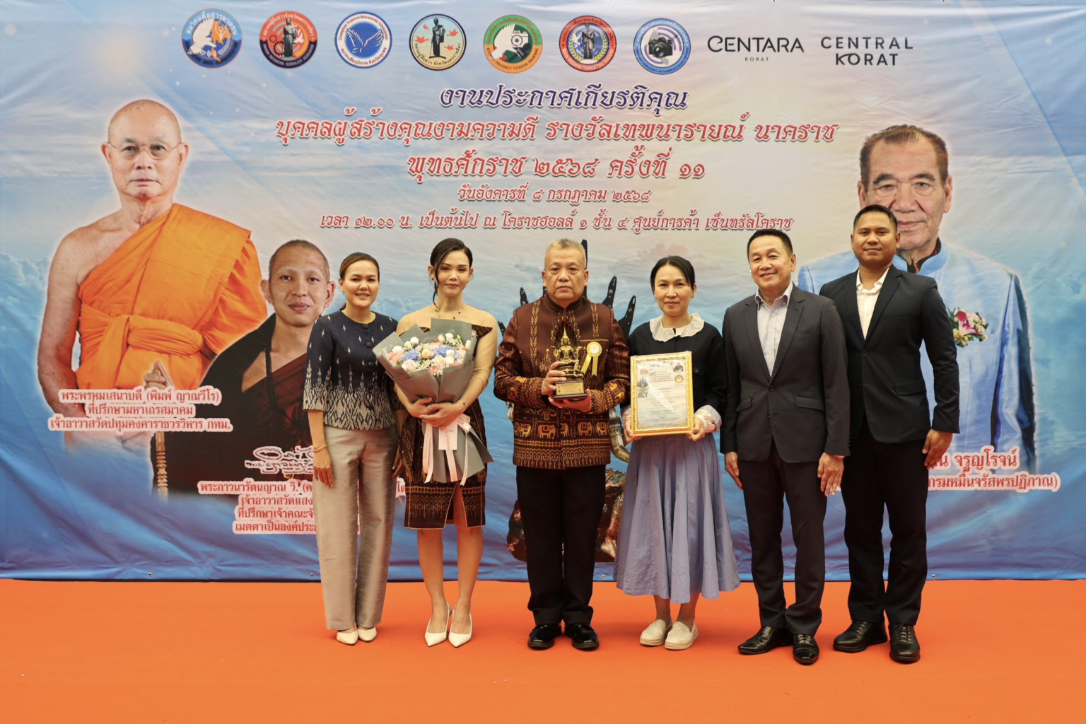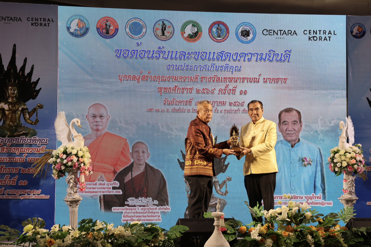 วันที่ 8 ก.ค.68 ที่เซ็นทรัลฮอลล์ 1 ชั้น 4 ศูนย์การค้าเซ็นทรัลโคราช พล.ต.ต.สุคนธ์ ศรีอรุณ ผบก.ภ.จว.สุรินทร์ เข้ารับรางวัล บุคคลผู้สร้างคุณงามความดี รางวัล “เทพนารายณ์ นาคราช” ปี 2568 ครั้งที่ 11 ด้านสาขาบุคคลต้นแบบผู้ส่งเสริมผู้ทำคุณประโยชน์ทำนุบำรุงพระพุทธศาสนาดีเด่น โดยมี พระพรหมเสนาบดี (พิมพ์ ญาณวรโร) ที่ปรึกษามหาเถรสมาคม เจ้าอาวาสวัดปทุมคงคาราชวรวิหาร กรุงเทพฯ เป็นประธานสงฆ์, พระภาวนารัตนญาณ วิ. (ครูบาอริยชาติ อริยจิตฺโต) เจ้าอาวาสวัดแสงแก้วโพธิญาณ ที่ปรึกษาเจ้าคณะจังหวัดเชียงราย เมตตาอธิษฐานจิตองค์รางวัล, หม่อมราชวงศ์ปณิธาน จรูญโรจน์ เป็นประธานมอบรางวัลฯ