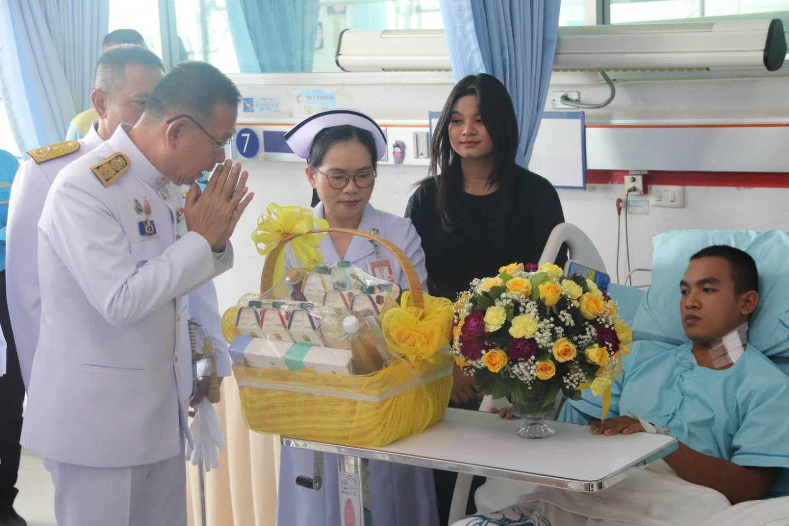 ผู้ว่าฯโคราชเชิญกระเช้าสิ่งของดอกไม้ในหลวงพระราชทานให้ทหาร 5 นายบาดเจ็บจากชายแดน