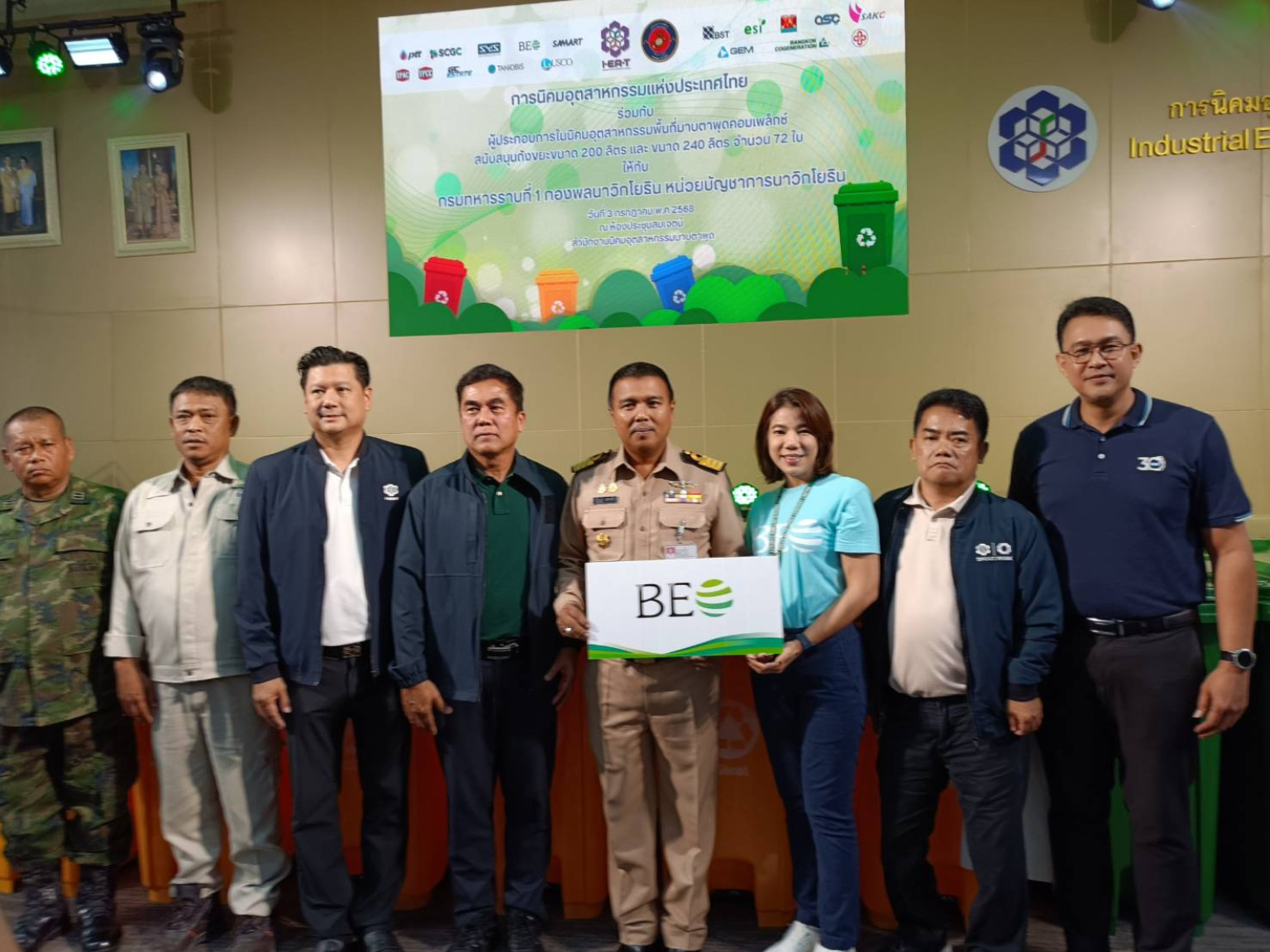 ระยอง – การนิคมอุตสาหกรรมแห่งประเทศไทย (กนอ.) ร่วมมือสถานประกอบการในเขตมาบตาพุดคอมเพล็กซ์ ส่งมอบถังขยะขนาด 240 ลิตร และ 200 ลิตร รวมจำนวน 72 ใบ ให้แก่กรมทหารราบที่ 1 กองพลนาวิกโยธิน หน่วยบัญชาการนาวิกโยธิน เพื่อนำไปใช้รองรับขยะจากครัวเรือนทหารภายในพื้นที่บ้านพักของครอบครัวกำลังพล