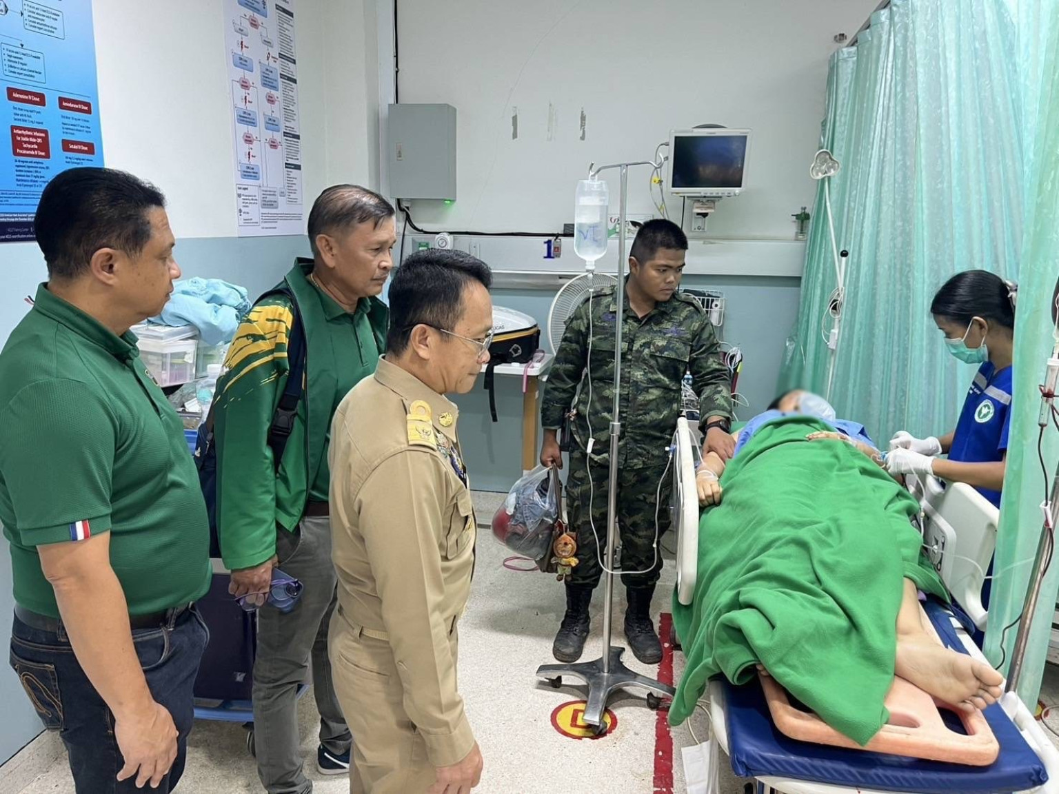 ทราบชื่อคือ นายรังสรร อายุ 39 ปี ชาว ต.กระหวัน อ.ขุนหาญ จ.ศรีสะเกษ จากนั้นได้โทรศัพท์แจ้งให้เจ้าหน้าที่ตำรวจ สภ.ขุนหาญ เข้ามาตรวจสอบ ส่วนผู้ได้รับบาดเจ็บรู้สึกตัว พูดคุยได้แต่มีอาการความดันต่ำ และบาดแผลได้รับความเสียหายลึกถึงกระโหลกศีรษะ แพทย์ผู้รักษาได้ส่งตัวไปทำการรักษาต่อที่โรงพยาบาลศรีสะเกษ