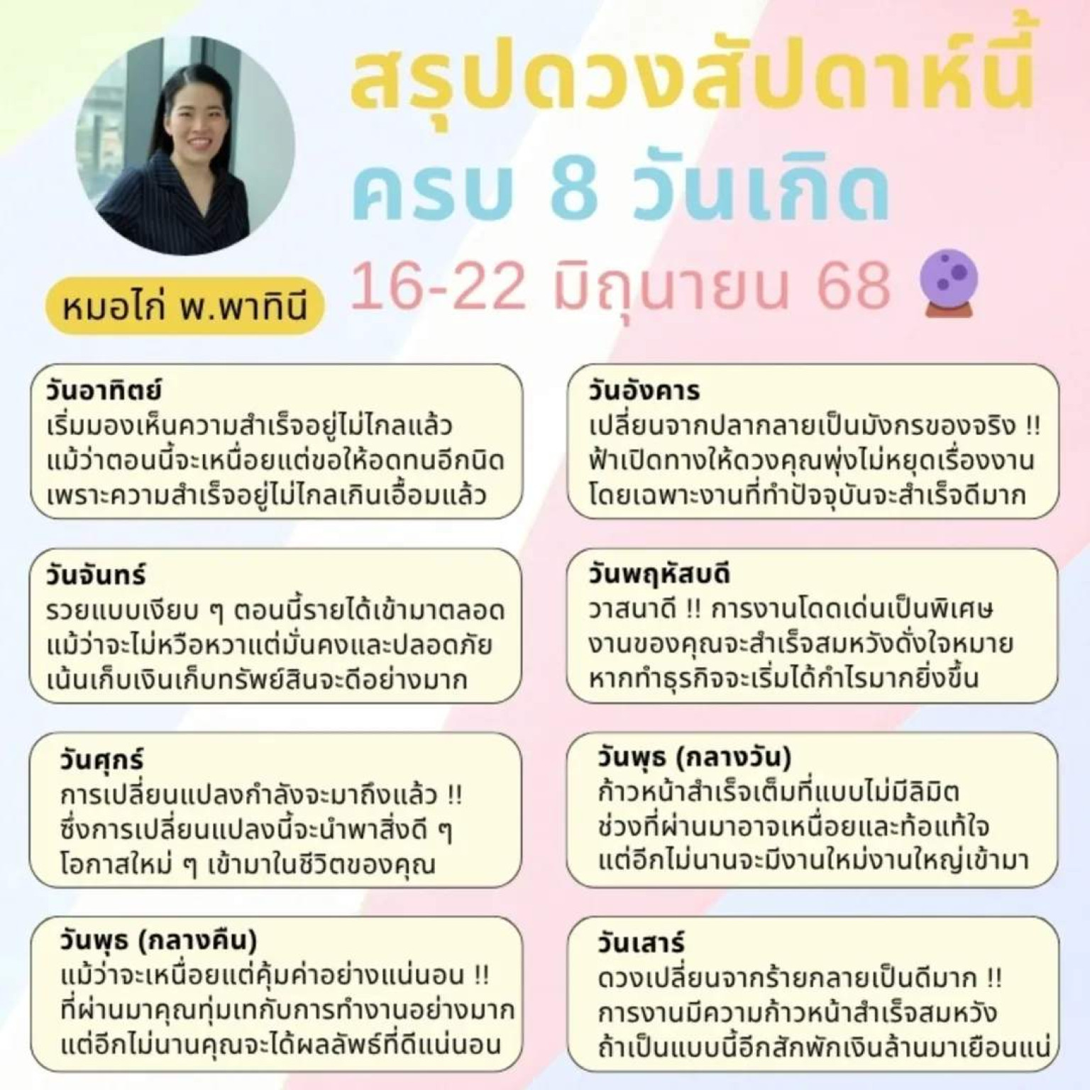 วันที่ 16 มิ.ย.68 "หมอไก่" นักพยากรณ์ชื่อดัง โพสต์คลิป พร้อมข้อความผ่านอินสตาแกรม @morkai99 ระบุว่า… สรุปดวงข่าวดีสัปดาห์นี้ คร...