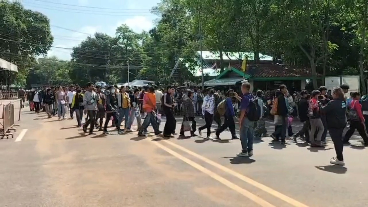 วันที่ 25 มิ.ย.68เวลา ประมาณ 09.30 น.จนท.ทหารฝ่ายความมั่นคง ฝ่ายปกครอง ตม.สุรินทร์และหน่วยงานที่เกี่ยวข้องได้ลงพื้นที่ตลาดการค้าชายแดนช่องจอม และตลาดโดยรอบ ต.ด่าน อ.กาบเชิง จ.สุรินทร์ เพื่อทำความเข้าใจและขอความร่วมมือให้บรรดาแรงงานชาวกัมพูชา ทั้งที่มีบัตรแรงงานต่างด้าว พาสปอร์ต และบอเดอร์พาสต์ที่ถูกต้อง หรือใกล้หมดอายุหรือหมดอายุแล้วก็ตาม ได้ขอความร่วมมือเชิญให้เดินทางกลับประเทศกัมพูชาไปก่อน จนกว่าสถานการณ์จะปกติ ซึ่ง จนท.ทหารยืนยันว่าไม่ใช่การผลักดัน แต่เป็นการขอความร่วมมือและทำความเข้าใจด้วยสัมพันธ์ที่ดี โดยนำร่องเริ่มแผนดังกล่าวที่ชายแดนช่องจอมก่อน ตามแนวทางฝ่ายความมั่นคง