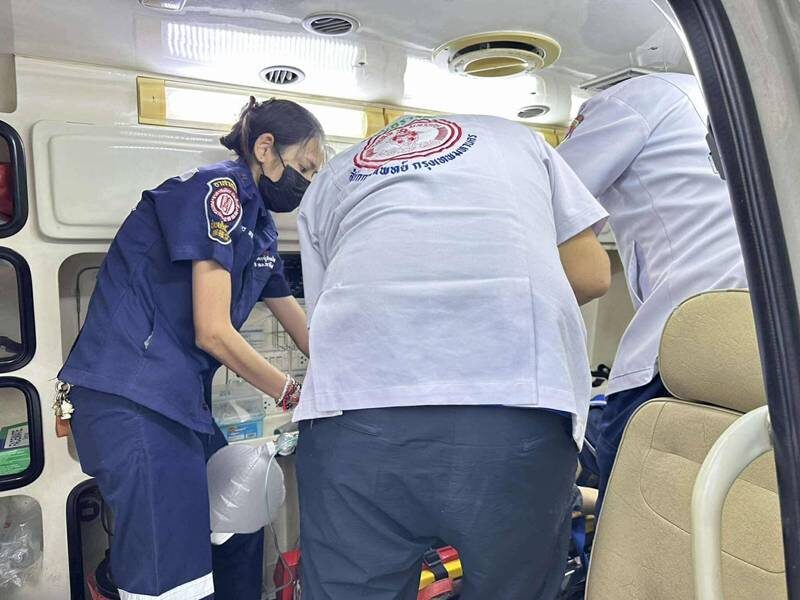 เจ้าหน้าที่อาสาสมัครกู้ภัยมูลนิธิป่อเต็กตึ๊งพร้อมทีมแพทย์พยาบาลดำเนินการนำชาย 1 ราย นำส่งโรงพยาบาลมิตรประชาแพทย์รับดำเนินการอย่างเร่งด่วน ส่วนหญิงอีกรายนำส่งโรงพยาบาลพญาไท 3 และเสียชีวิตในเวลาต่อมา