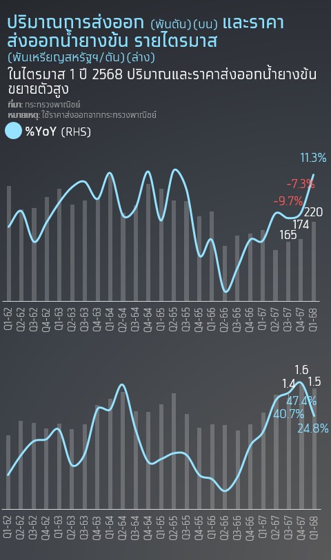 - มูลค่าการส่งออกยางพาราไตรมาส 1 ยังขยายตัวต่อเนื่อง