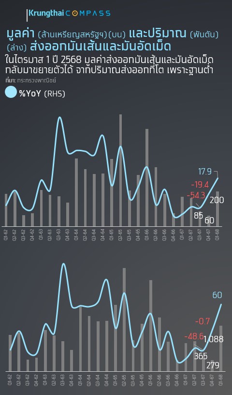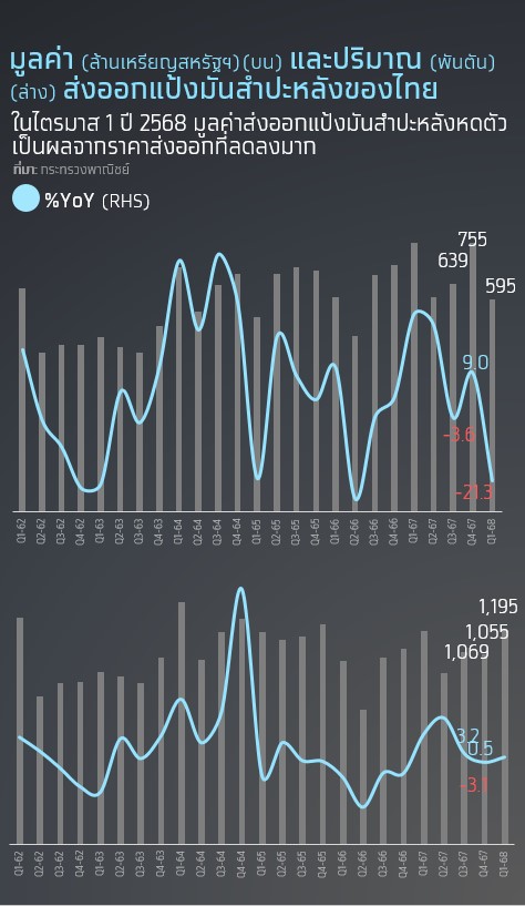 - มูลค่าส่งออกมันสำปะหลังไตรมาส 1 หดตัวต่อเนื่อง