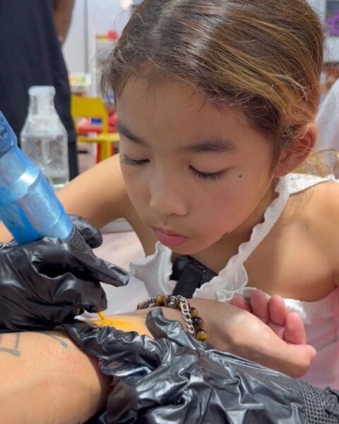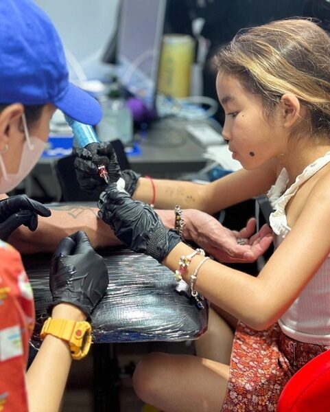แจ๊ส-แจงอึ้ง น้องแตงไทย วัย 8 ขวบ ขอเรียนสัก พ่อนั่งแท่นช่วยเป็นแบบ ฝึกการลงเข็มลายแรกบนแขน ท่ามกลางแฟนคลับชื่นชม สนับสนุนทำในสิ่งรัก แห่รอดูผลงานเพียบ