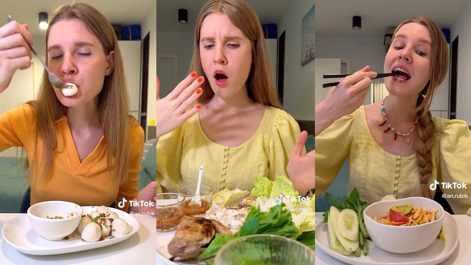 เมื่อวันที่ 28 ธันวาคม โลกโซเชียลแห่แชร์วิดีโอของ "อนาสตาเซีย" นักท่องเที่ยวสาวที่ได้ทำวิดีโอรีวิวอาหารไทยลงบนช่องติ๊กต็อก บอกเลยว่าเมนูที่เธอเลือกทานแต่ละอย่างนั้น ชวนน้ำลายไหลจนกลายเป็นไวรัล มียอดผู้เข้าชมไม่ต่ำกว่าหลักแสน