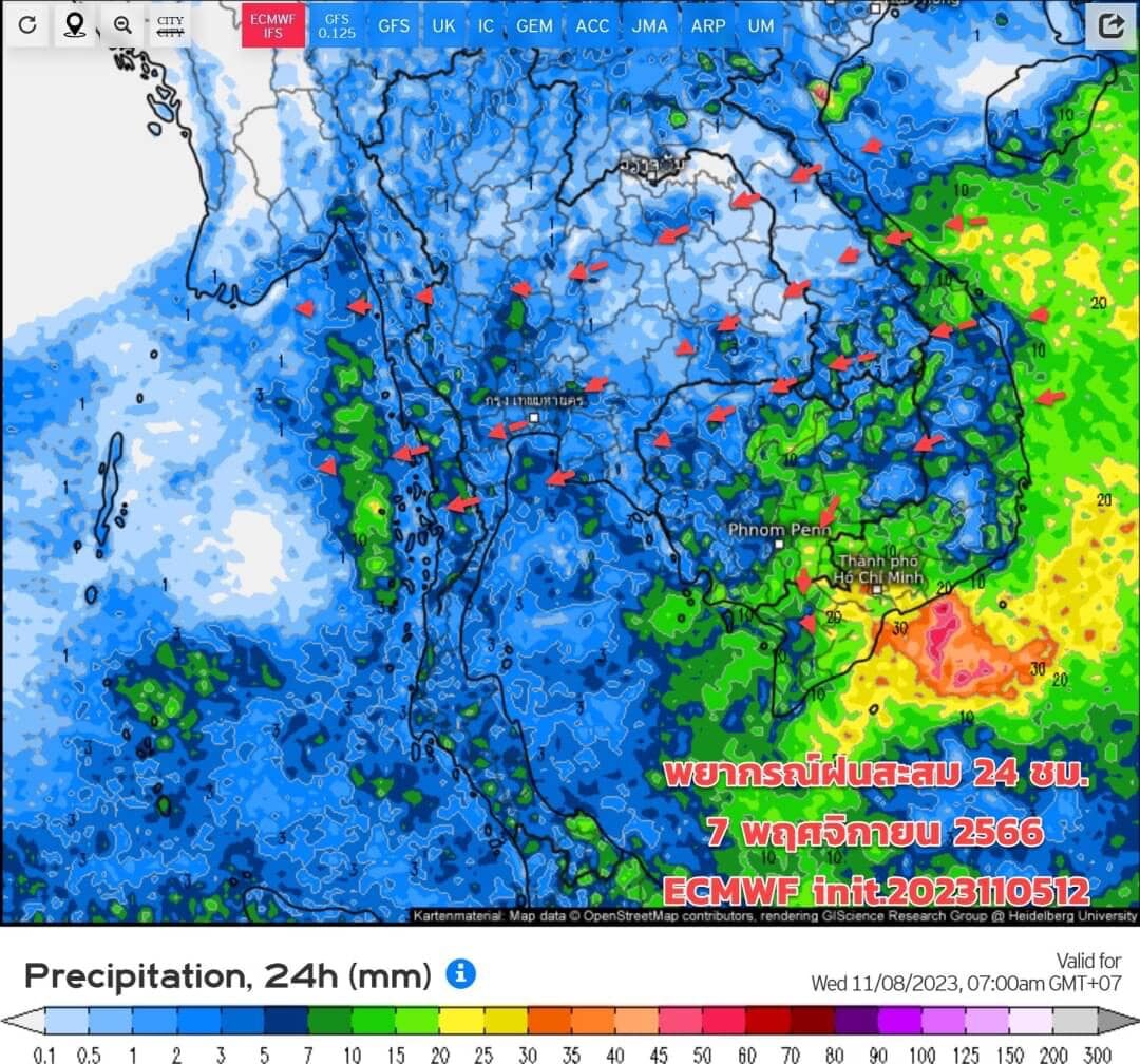 - กรมอุตุฯ พยากรณ์ฝนสะสม 10 วันล่วงหน้า 6-15 พ.ย. เช้า-บ่าย แดดดี ตกเย็นฝนถล่ม
