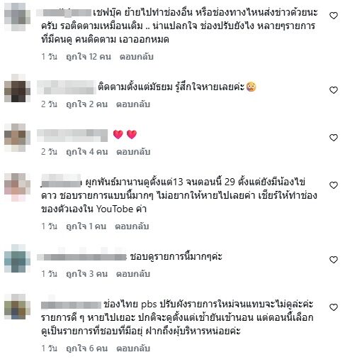 แฟนๆต่างก็มาคอมเมนต์ แห่เสียดายใจหาย พร้อมทั้งเป็นกำลังใจ และสอบถามว่าไปทำอะไรต่อ แฟนๆพร้อมไปติดตามด้วย อาทิ