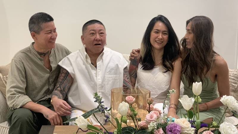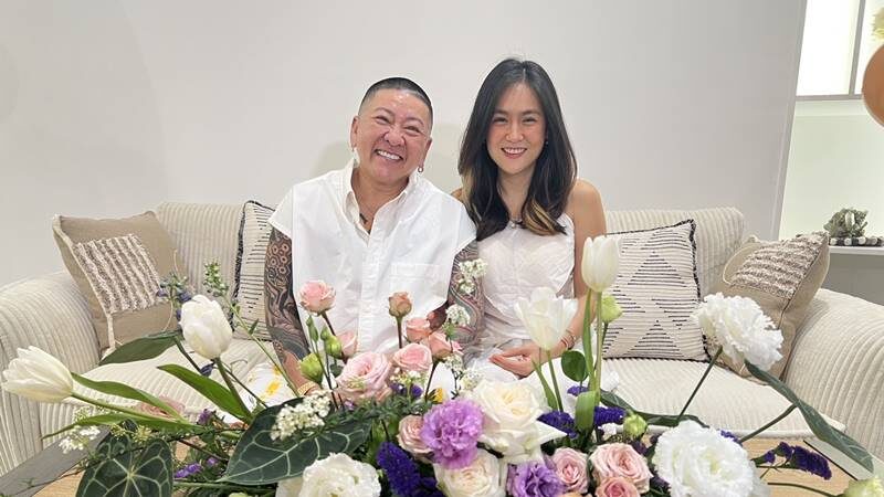 ป๋าต๊อบ : “จริงๆ แล้ววันนี้ที่เชิญทางเขตมาจด เพราะพ่อบอกว่า พ่อไปเขตไม่ไหวนะ วันนี้ก็มานี่ไม่ไหวอีก (หัวเราะ) แต่เมื่อเช้านี้ก็ให้พรลูกแล้ว รักกันนานๆ นะลูกนะ มีอะไรก็ยอมๆ กันนะ ขอให้อยู่ด้วยกันเจริญๆ พ่อพี่น่ารักมาก รู้สึกโชคดีที่เกิดเป็นลูกเขา”