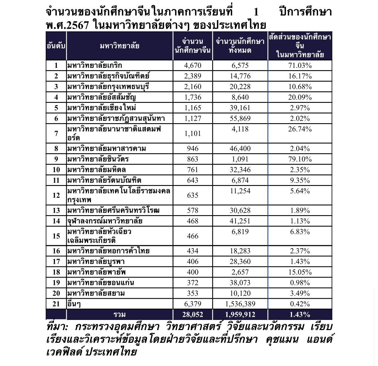 ทุนจีนเทกโอเวอร์มหาวิทยาลัยไทย บางแห่ง นศ. จีนสูงกว่า นศ.ไทย