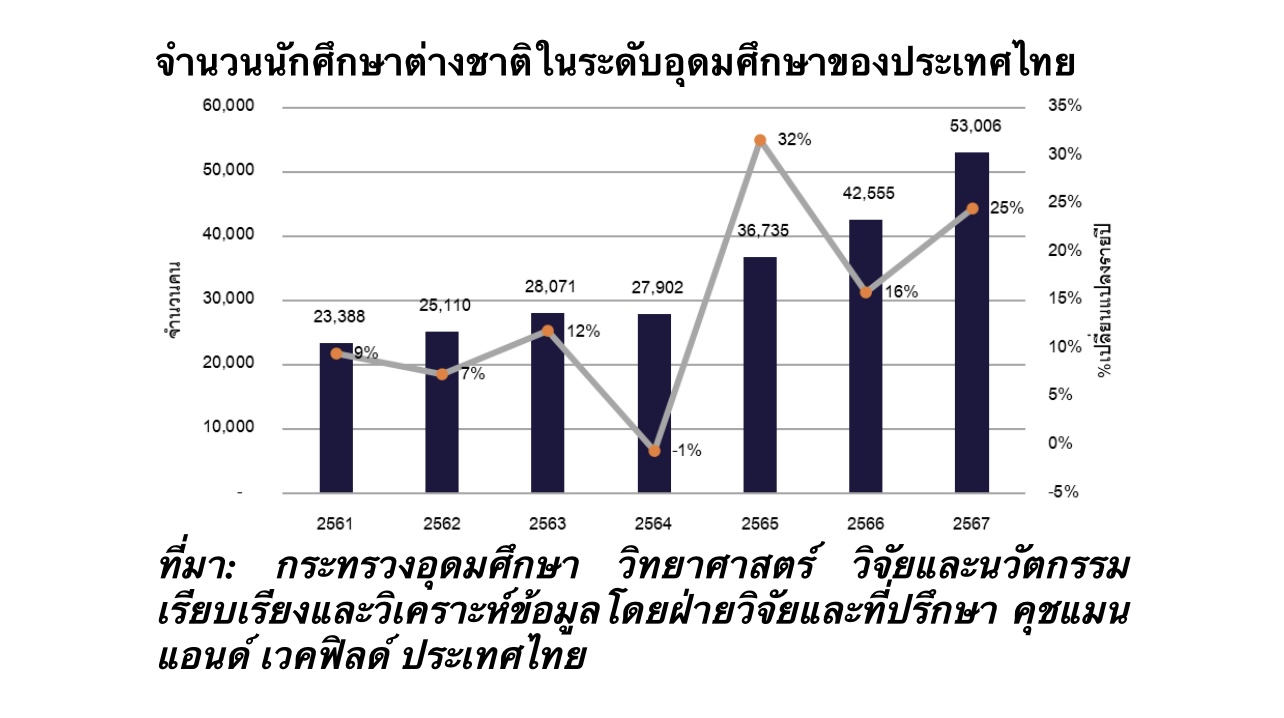 ทำให้จำนวนนักศึกษาต่างชาติในไทยเติบโตเฉลี่ย 18% ต่อปี