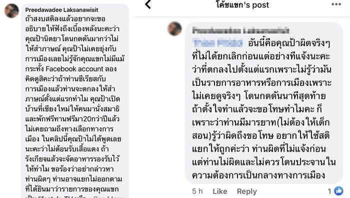 จากกรณีเดือดขึ้นเทรนด์ทวิตเตอร์เป็นอันดับ 1 เมื่อรายการโค้ชแขก ดำเนินรายการโดย แขก คำผกา และ โรซี่ เดินทางไปเช็กอินร้านในตำนานร้านพริกแกงแห่งบางลำพู แต่ถูกเจ้าของร้านเชิญออกจากร้านโดยให้เหตุผลว่า ยังไม่เคยดูรายการและขอดูเนื้อหาของรายการก่อน แม้ว่าจะมีการแจ้งว่า ติดต่อล่วงหน้ามาแล้วนับเดือน
