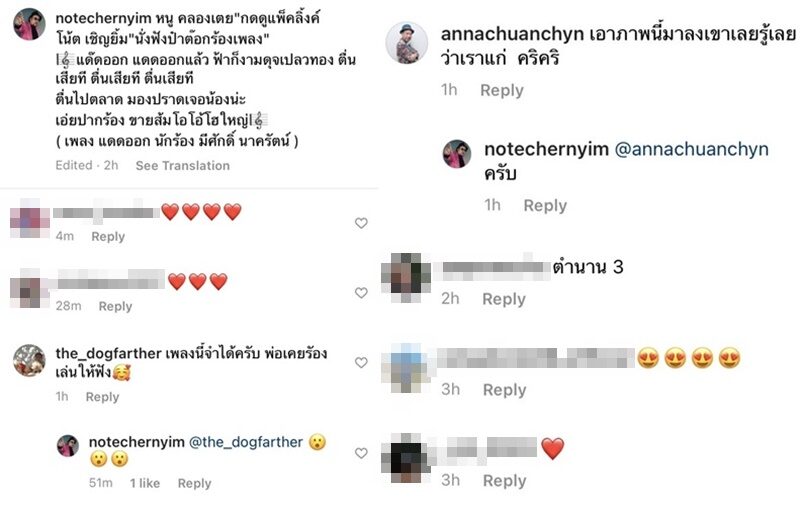 ขณะที่ แอนนา ชวนชื่น เข้ามาคอมเมนต์ว่า เอาภาพนี้มาลงเขาเลยรู้เลยว่าเราแก่ คริคริ ขณะที่แฟนตลกคอมเมนต์ส่งหัวใจรัวๆ พร้อมทั้งบอกว่า ตำนาน 3 , เพลงนี้จำได้ครับ พ่อเคยรัองเล่นให้ฟัง เป็นต้น