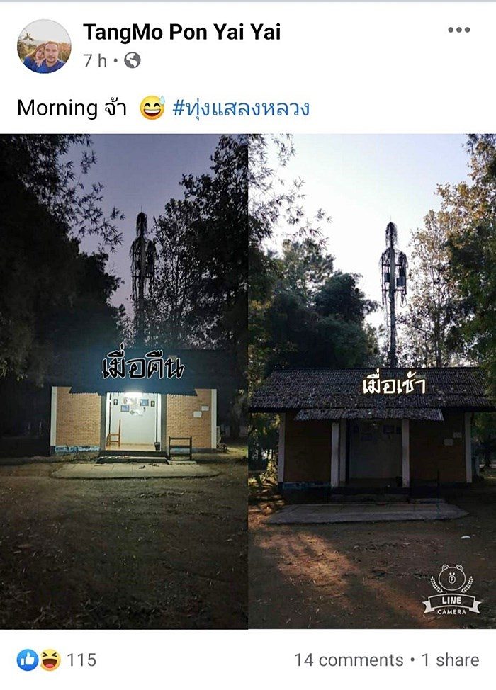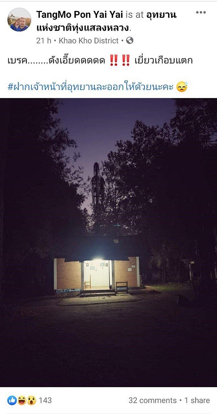 กลายเป็นภาพที่ได้รับการแชร์ในโลกออนไลน์เมื่อนักท่องเที่ยวรายหนึ่งเดินทางไปเที่ยว อุทยานแห่งชาติทุ่งแสลงหลวง จ.เพชรบูรณ์ โดยบรรยากาศตอนช่วงค่ำมืดสลัว และพบว่า บริเวณหลังอาคารเล็ก ๆ มีอะไรบางอย่างลักษณะสูงๆ แปลกๆ โดยผู้โพสต์ ระบุว่า " "เบรก……..ดังเอี๊ยดดดดด เยี่ยวเกือบแตก" ซึ่งมีหลายคนเข้ามาบอกว่า ลักษณะเหมือนเปรต หลายคนก็พอเดาออกว่าเป็นอะไร