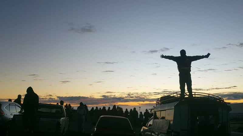 วันนี้นักท่องเที่ยวมีความสุขมากที่ดอยอินทนนท์ ท้องฟ้าเปิด บางคนยืนบนหลังคารถกางแขนรับแสงอาทิตย์ยามเช้า บางรายบันทึกภาพทะเลหมอกที่ขาวโพลนอย่างมีความสุข สวมเสื้อกันหนาวกันหลากหลายแฟชั่น