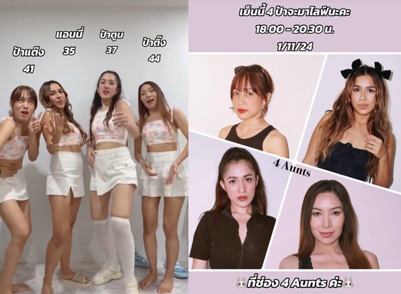 “4 ป้า มาเปิดช่องติ๊กต็อก ไลฟ์ขายของกับพี่ปู อดีตผู้จัดการแน็ก ทำให้แฟนคลับไม่พอใจ ดราม่ากล่าวหาว่า 4 ป้าดังแล้วแยกวง เปิดช่องไลฟ์สดแข่งกับแน็ก”