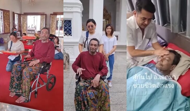 โดยหนุ่ม คงกระพัน พา เอ๋ อร อรชัญญาช์ ภรรยาของ วินัย ไกรบุตร มาพบ อ.ไพศาล แสนไชย ที่ จ.ลำพูน เผยสามีป่วยมา จะ 5 ปีแล้ว ชีวิตประจำวันต้องดูแลลูก ไปส่งโรงเรียน แล้วกลับมาดูแลสามี อาบน้ำให้ ต้องกินยา บ่ายก็ไปรับลูก และมาดูแลสามีต่อ สามีป่วย 1 เมษา ปี 67 จะครบ 5 ปีที่เขาป่วย ไม่เคยห่างจากเขาเลย ทางการแพทย์ที่รักษากับหมออยู่ โรคนี้หาสาเหตุไม่ได้ อยากจะหายก็หาย แล้วแค่ร่างกาย บางคนเดือนเดียวก็หาย บางคน 10 ปี บางคน 5 ปี ยิ่งแข็งแรงยิ่งหายยาก เราแข็งแรงภูมิตัวนี้ก็แข็งแรงไปด้วย พี่เมฆ แข็งแรงมากภูมินี้ก็แข็งแรงไปด้วย