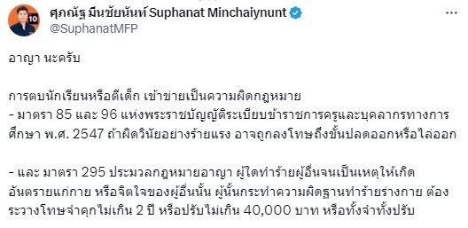 "อาญา นะครับ การตบนักเรียนหรือตีเด็ก เข้าข่ายเป็นความผิดกฎหมาย