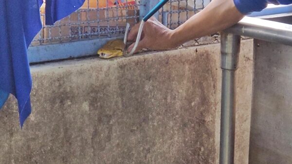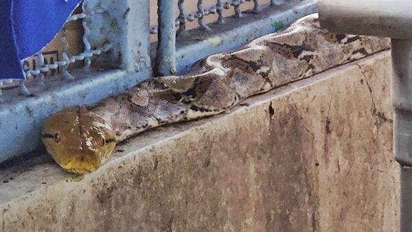 จากนั้นเจ้าหน้าที่กู้ภัยได้เข้าไปดูพบว่าเป็น งูเหลือม ขนาดไม่ใหญ่มากนัก ซึ่งมีความยาวกว่า 2 เมตรนอนนิ่งเหยียดตัวยาวบนขอบกำแพงปูนข้างซิงค์ล้างจาน จึงใช้เหล็กขอที่ใช้เกี่ยวงูกดลงไปที่หัวของงูเหลือม และใช้มือเปล่าจับที่คองู แล้วดึงออกมาได้สำเร็จ ซึ่งมีครู อาจารย์ และแม่ครัวยืนดูกันเป็นจำนวนมาก และถ่ายคลิปการจับงูของเจ้าหน้าที่กู้ภัย