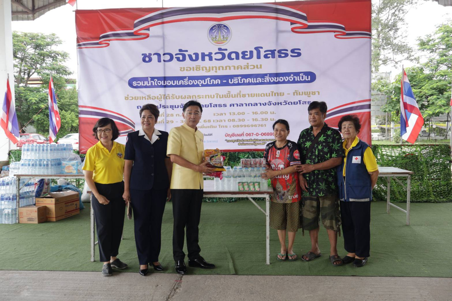 นายชาญชัย ศรศรีวิชัย ผู้ว่าราชการจังหวัดยโสธร กล่าวว่า "กิจกรรมนี้จัดขึ้นเพื่อเป็นศูนย์กลางในการรวบรวมน้ำใจและส่งกำลังใจไปยังเจ้าหน้าที่ผู้ปฏิบัติงานและพี่น้องประชาชนในพื้นที่ชายแดน ผมรู้สึกซาบซึ้งใจอย่างยิ่งที่ได้เห็นทุกภาคส่วนของจังหวัดยโสธร ทั้งส่วนราชการ เอกชน และพี่น้องประชาชน ต่างพร้อมใจกันนำสิ่งของมาร่วมบริจาค ซึ่งแสดงให้เห็นถึงพลังแห่งความสามัคคีและน้ำใจของคนไทยที่ไม่เคยทอดทิ้งกันในยามยากลำบาก"