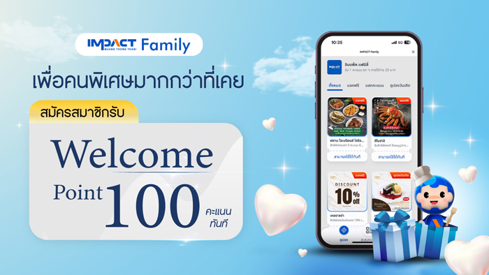 อิมแพ็ค เมืองทองธานี รีลอนซ์ IMPACT Family…เพื่อคนพิเศษมากกว่าที่เคย เพิ่มประสบการณ์สุดเอ็กซ์คลูชีพ แค่สมัครก็รับ Welcome Point 100 คะแนนทันที พร้อมสิทธิเพียบทั้งอิ่มคุ้มไม่ต้องลุ้น รับเมนูอาหารฟรี ส่วนลดวันเกิดสูงสุด 20% หวังมัดใจลูกค้าระยะยาว