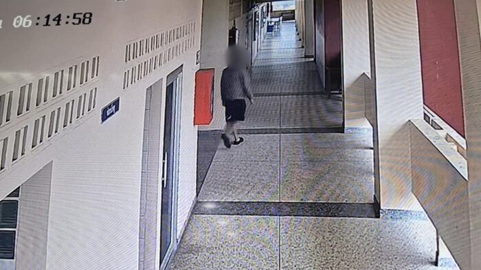 เมื่อทราบว่าเปิดเรียนตามปกติ ได้รีบเดินไปอาคาร 4 ซึ่งเป็นอาคารเรียนสูง 9 ชั้น บุคลากรเห็นท่าไม่ดี จึงรีบไปตามครูที่มีบ้านพักในละแวกโรงอาหาร เพื่อแจ้งเหตุไม่ปกติให้ทราบ แต่ประตูทางเข้าอาคาร 4 ปิดไว้ นายโจได้ปีนกันสาดเข้าไปในอาคาร ซึ่งกล้องวงจรปิดบันทึกภาพนายโจเดินเพียงลำพังภายในอาคาร