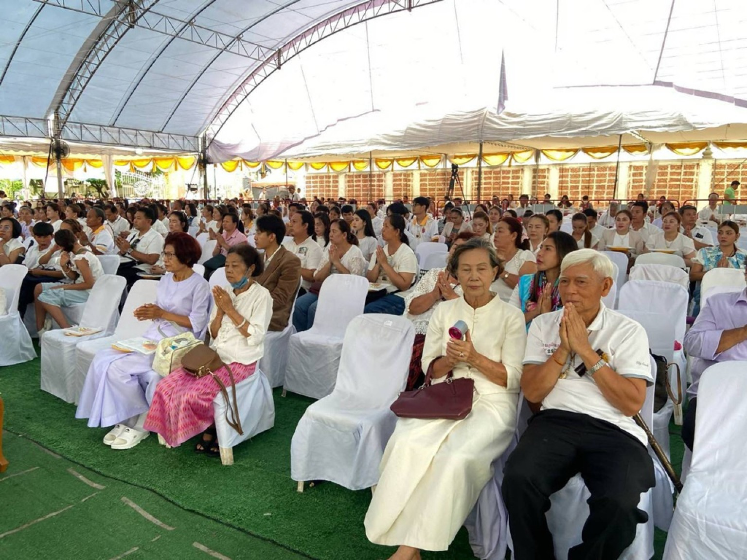 ช่วงเข้า พระภาวนาวัชรมุนี ดร. เจ้าคณะอำเภอเมืองหนองคาย ผู้ช่วยเจ้าอาวาสวัดโพธิ์ชัย พระอารามหลวง รองอธิการบดี มจร วิทยาเขตหนองคาย พร้อมด้วยคณะสงฆ์ เจริญพระพุทธมนต์ จากนั้น ยังมีพิธีมอบโฉนดที่ดินผืนใหม่ให้กับทางวัดยอดแก้ว โดยนางสาวปราณี วงศ์บุตร รองผู้ว่าราชการจังหวัดหนองคายเป็นตัวแทนมอบฯ และพิธีมอบทุนการศึกษาให้แก่เด็กนักเรียน มีนายวีระชัยโชค มงคลภูมิรัตน์ รองนายกเทศมนตรีเมืองหนองคาย ว่าที่ร้อยตรีชัยชนะ แสนศักดิ์ รองนายกเทศมนตรีเมืองหนองคาย หัวหน้าส่วนราชการ ภาคเอกชน ศิษยานุศิษย์และประชาชนเข้าร่วมพิธีจำนวนมาก