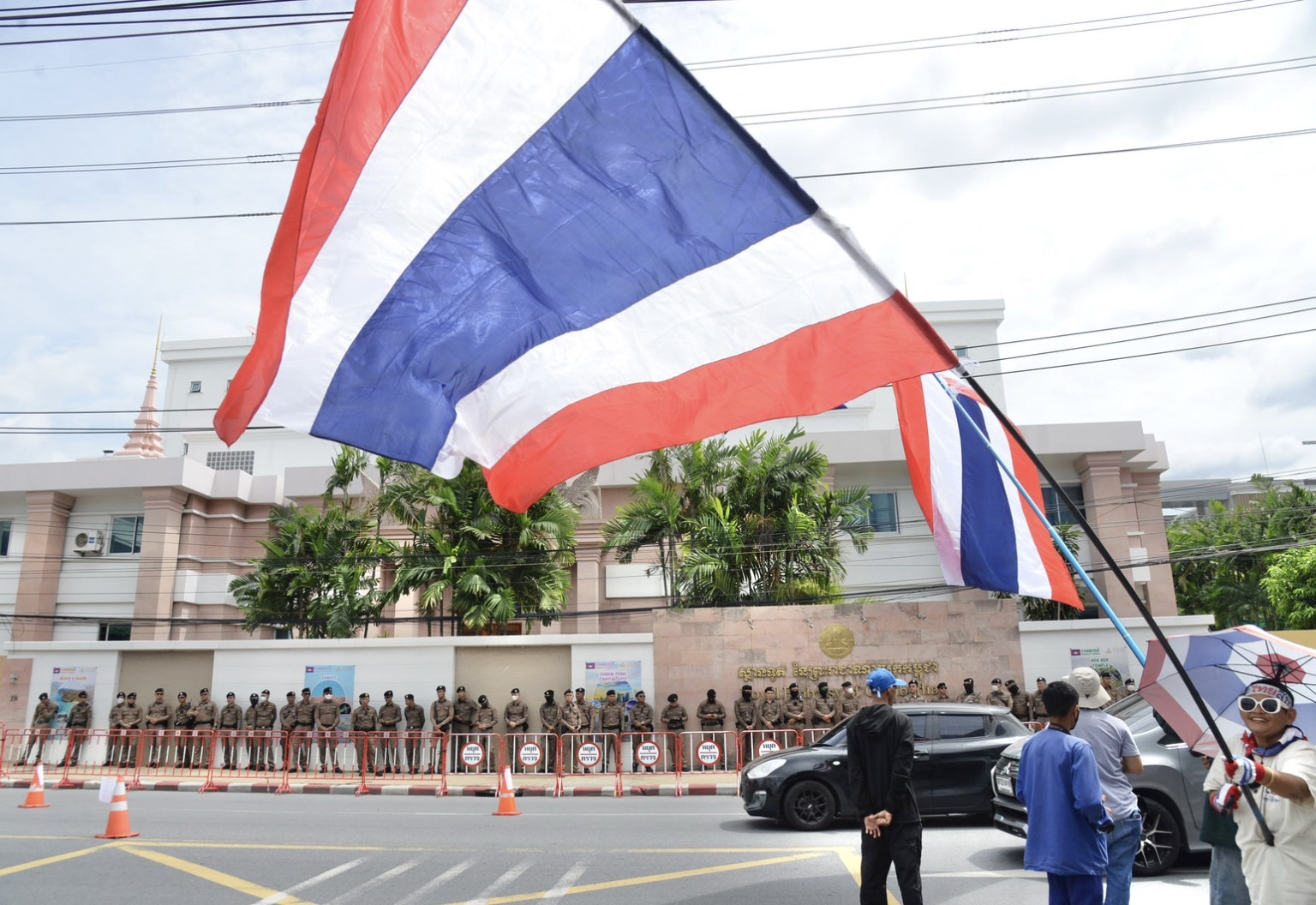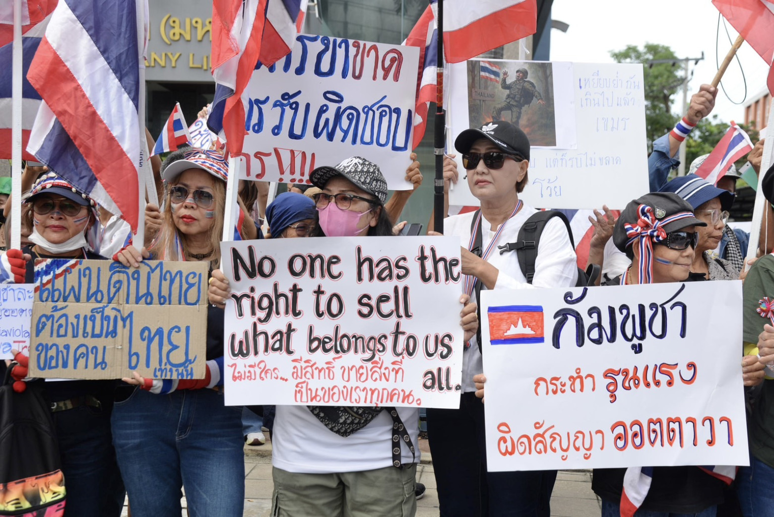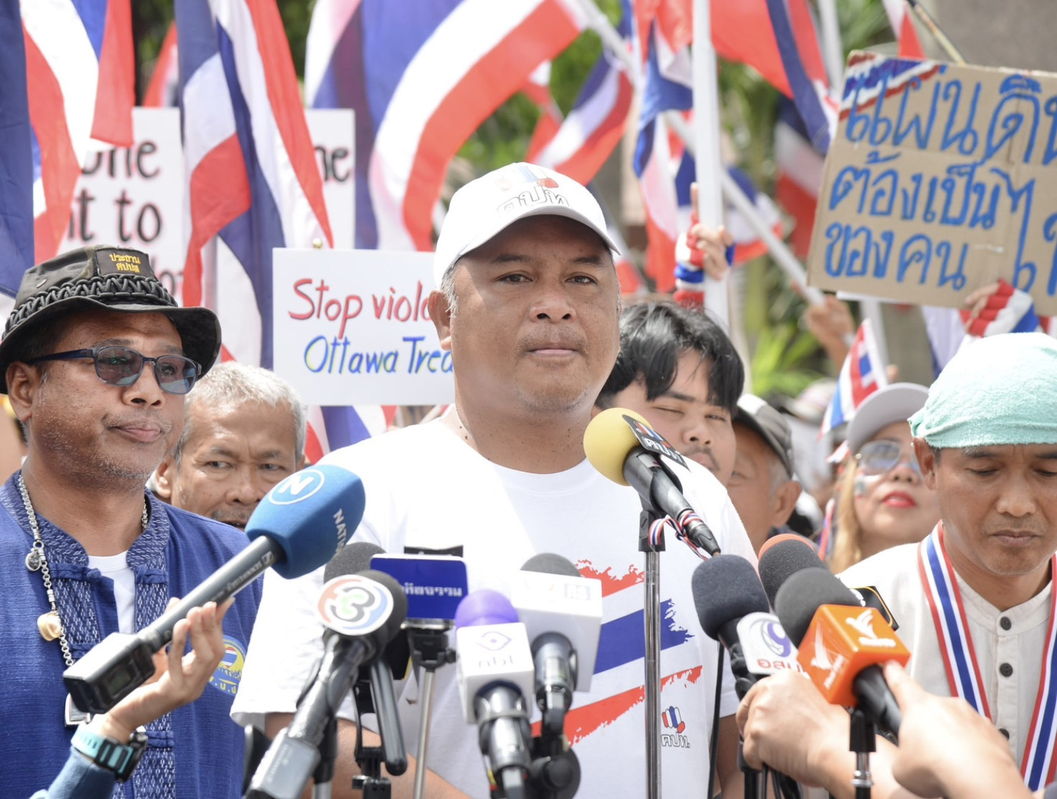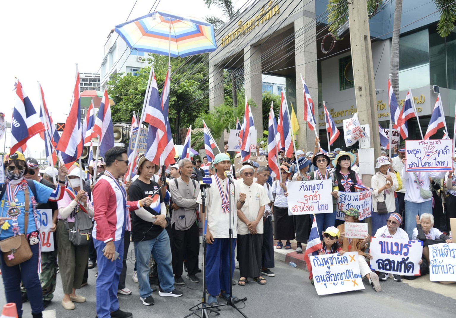 คปท. ชุมนุมประท้วงหน้าสถานทูตกัมพูชา เหตุทหารลอบวางทุ่นระเบิดในเขตแดนไทย