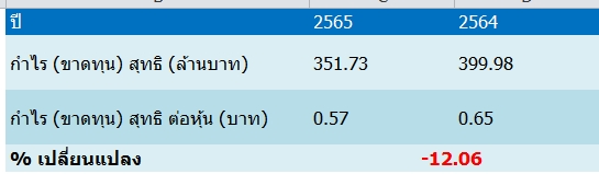 โดยผลการดำเนินงานลดลงเนื่องจากรายได้รวมปี 2565 ลดลง 11.25% อยู่ที่ 1,617.17 ล้านบาท เมื่อเทียบกับช่วงเวลาเดียวกันของปิก่อน 1,822.24 ล้านบาท แม้ว่าเศรษฐกิจทยอยเริ่มปรับตัวไปในทิศทางที่ดีขึ้น อันเป็นผลมาจากการลดลงของการแพร่ระบาดของโรค COVID-19 ผู้คนจึงเริ่มออกมาจับจ่ายใช้สอยเพิ่มขึ้น